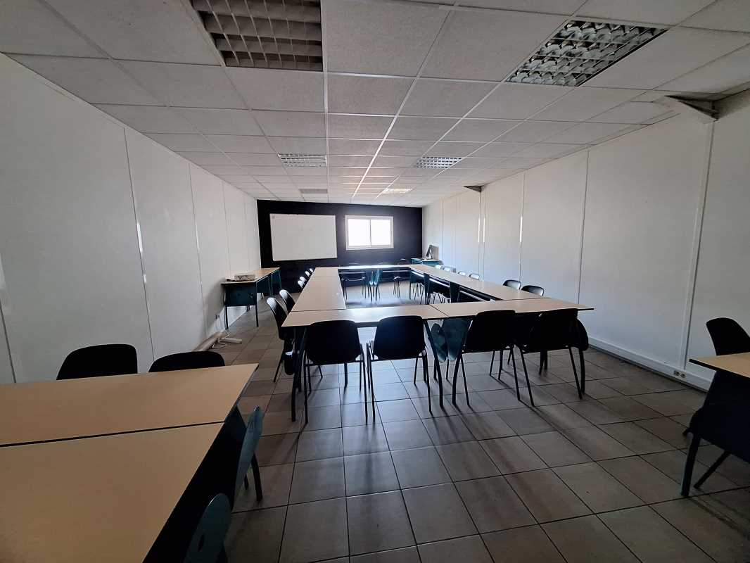 Bureaux cloisonnés, cuisine, salles de réunion, câblage informatique