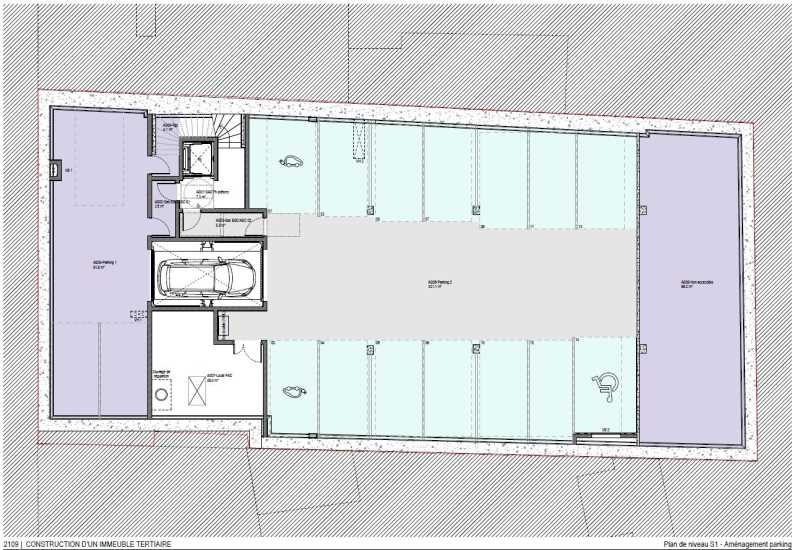 . 14 places de stationnement en R-1 sécurisé accessible par un ascenseur à véhicule dont 2 bornes de recharge électriques