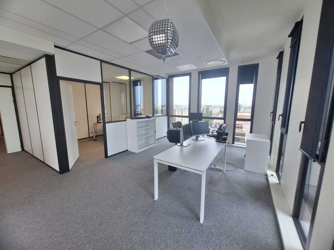 Face au Bassin à flot n°2 sur l'axe du Pont Chaban Delmas et avec accès direct à la rocade, au sein d'un immeuble de bureaux BREEAM Very Good - RT2012 livré en 2021, RCG vous propose en sous-location une surface aménagée de 227 m².